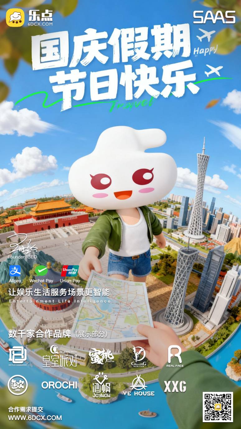 国庆放假通知!感谢广大商户、用户以及合作伙伴一直以来对公司的大力支持和配合! 假期期间乐点8x24小时坚守岗位。 乐点祝大家节日快乐!