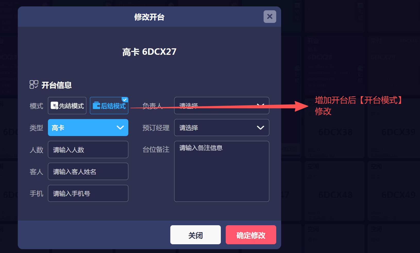 升级【会员/员工打折】,新增按折扣率打折等,台面界面显示低消差额,已开台的开台模式修改等功能