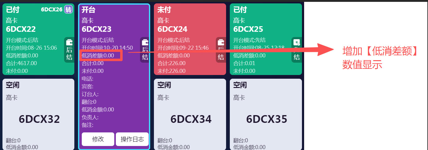台面界面显示低消差额