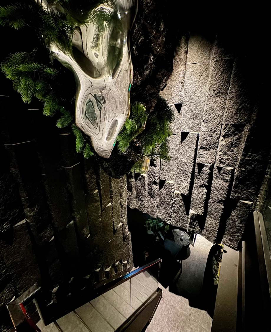 就连天花板都贴满了苔藓~还有大块岩石大把绿植!