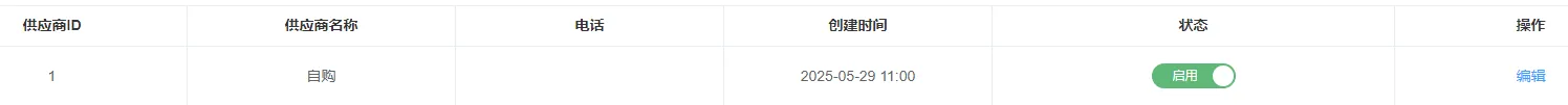 2.供应商状态的启用或停用操作(点击“状态”下方的按钮,即可启用、停用供应商)